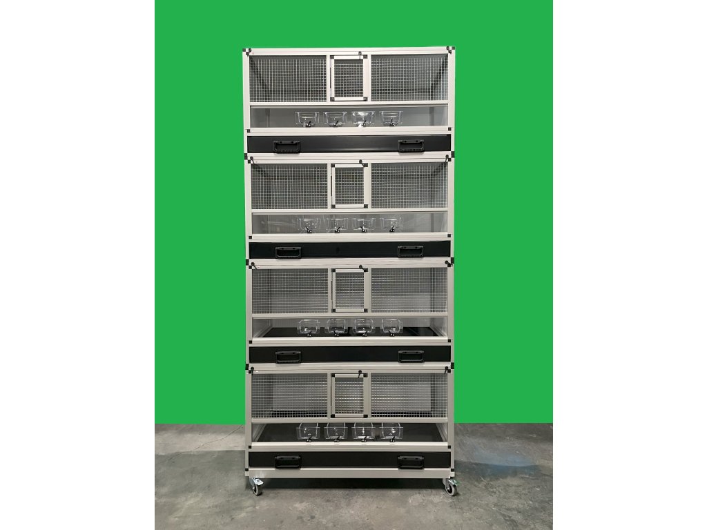 Rozmer jednotlivých klietok je v 50 x š 100 x h 50 cm. Celá zostava má potom rozmery v 217 x š 100 x h 50 cm. Tieto debnové klietky sú veľmi odolné. Dajú sa nielen umývať horúcou vodou, ale dajú sa použiť aj rôzne dezinfekcie.