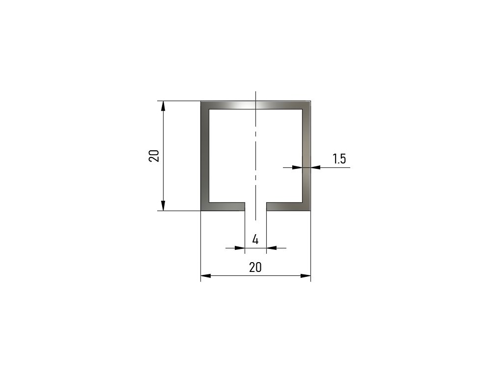 Hliníkový profil HJ20 s drážkou - 2 000 mm