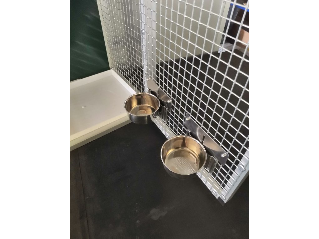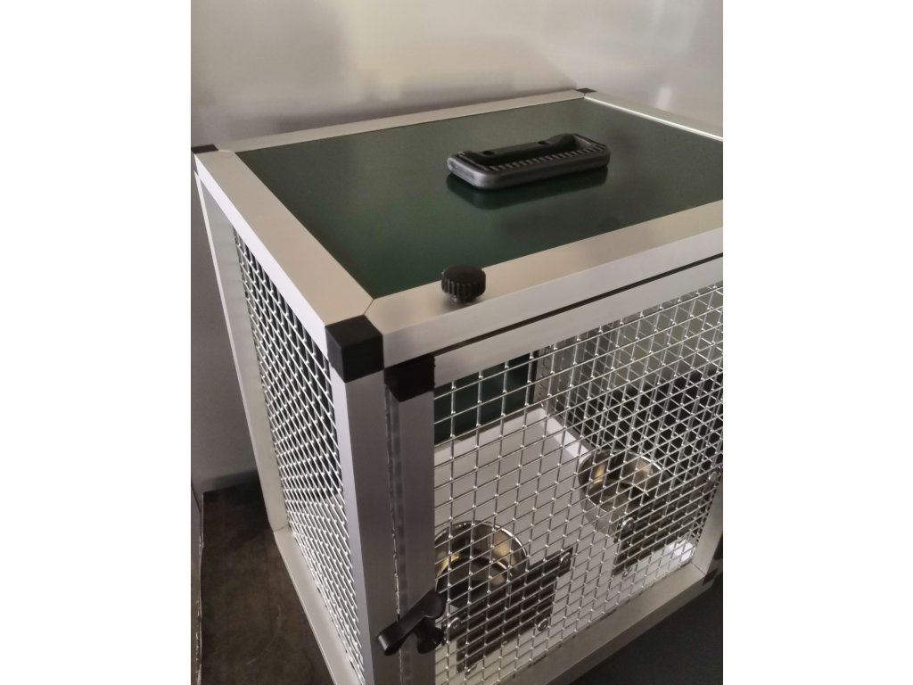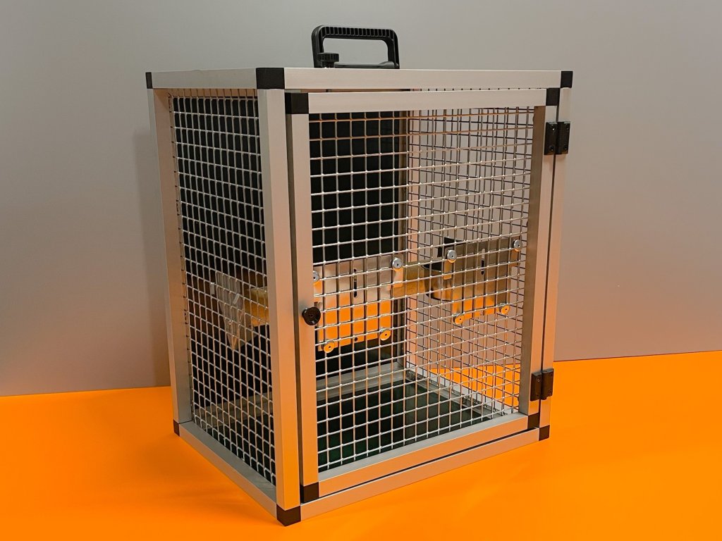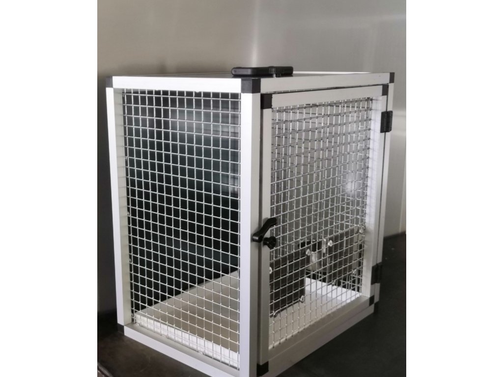 Prepravná klietka s kŕmidlami je vyrobená z profilu 20x20x1,5 mm s povrchovou úpravou eloxovaním.