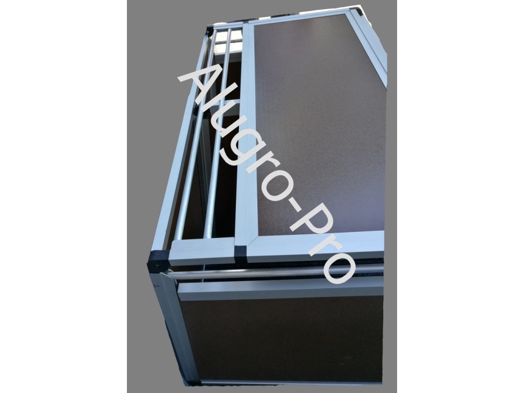 Pevná, tuhá konštrukcia, celá zo špeciálnych hliníkových eloxovaných profilov, je vyplnená plastovými doskami o sile 12mm.