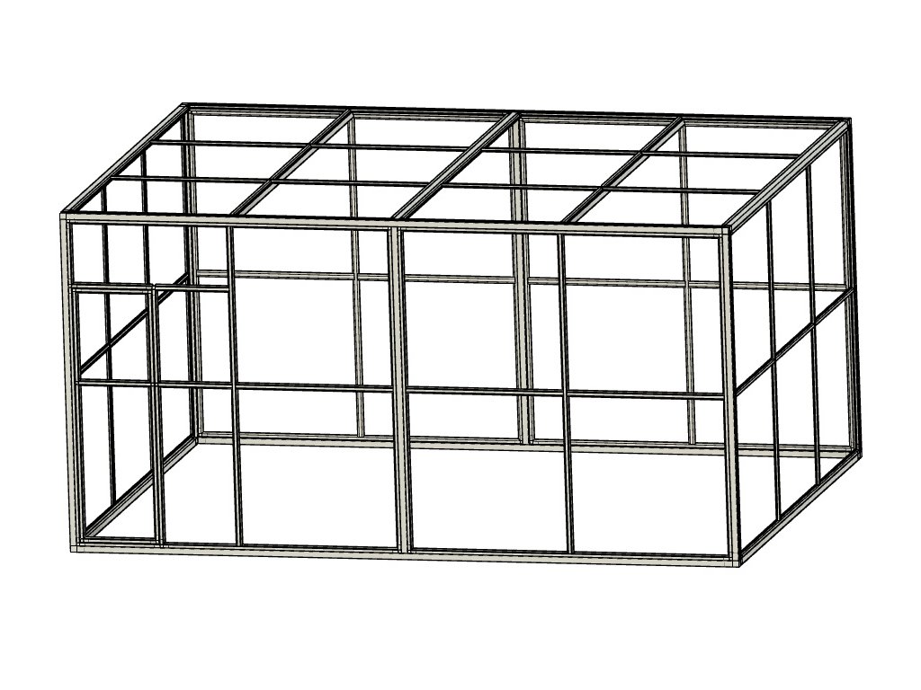 Voliéra má samostatnú nosnú konštrukciu z hliníkových profilov 40x40.
