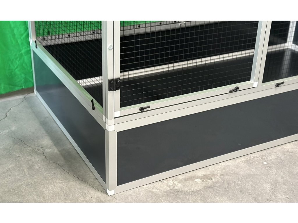 Voliéra sa čistí priamym vstupom do nej. Na želanie zákazníka môžeme vyrobiť akúkoľvek stenu v nasledujúcich farbách: biela, strieborná, antracitová, zelená a žltá.