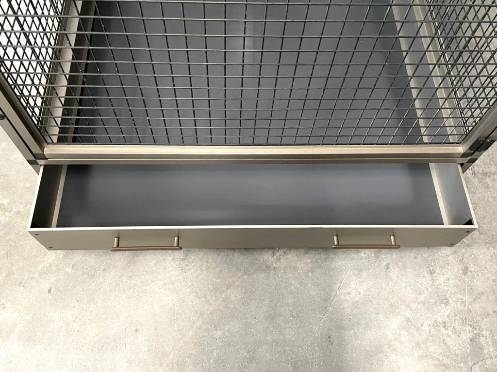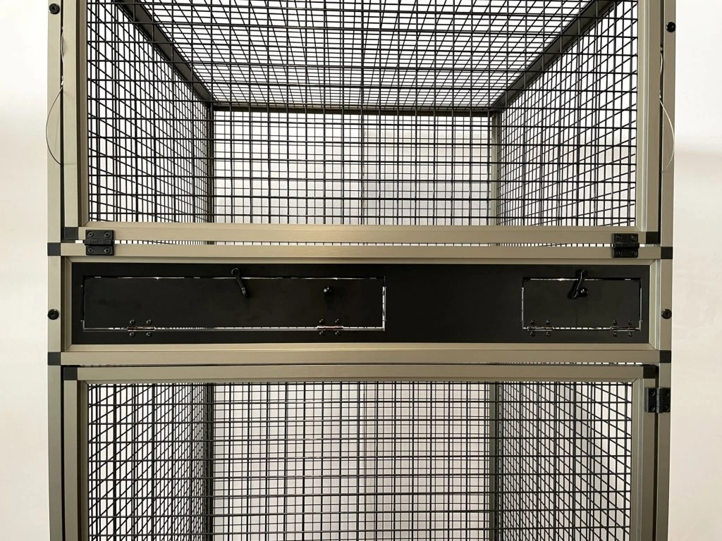 Táto moderná, veľmi priestranná voliéra je určená pre väčšie druhy vtákov. Konštrukcia je vyrobená výlučne z hliníka s povrchovou úpravou INOX. Zadná a bočné steny môžu byť na požiadanie plné a sú k dispozícii v nasledujúcich farbách: strieborná, antracitová, biela a zelená. Výplň môže byť aj z drôtenej siete, rovnako ako povrch profilov. Za príplatok 1 000 CZK/m2 ponúkame tapety s motívom dažďového pralesa. Ponúkame tiež kryty na všetky steny. Kryty pozostávajú z plexiskla pripevneného k samostatnému rámu, ktorý sa vkladá do rámu klietky. Tento rám pomáha udržiavať priestor okolo klietky uprataný. Kryty sa pripevňujú vo výške kŕmneho pultu. Ponúkame ich aj pre zadnú alebo bočné steny a pre celý priestor so sieťou. Cena panelov sa potom vypočíta podľa požiadaviek zákazníka.