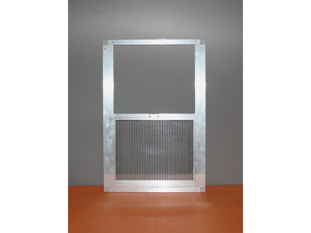 Rozmery vletového otvoru sú v 27 x š 36cm. Výletové okno je vyrobené z hliníkových profilov. Pojazd okna je podložený plastovým materiálom pre lepší posuv. Sila polykarbonátu je 10 mm.